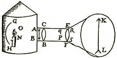 Outra ewstudo da câmera obscura é apresentada, desta vez na forma em um livro, por este professor da escola alemã. Ele o chamou de sua "Opticum Libellum" e publicou "Neu-Erfundene Mathematische Und Optische Curiostaten 'em Leipzig em 1677. O livro é ilustrado e descrito na figura 302.