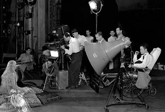 "This shot was taken during a line up for Billy's entrance, each increasing close up requiring a lens and lighting change for less than a second of film. I remember the crew being extremely uncomfortable that day, none more so that quietly suffering Billy, 98 degrees outside and easily breaking 100 on stage. It would have had to have been sweltering for Mr. Whale to remove his natty tie and vest. That man behind the camera looking like he might break into a dash is Robert Pierce the camera operator. I remember he smelled of grilled onions."