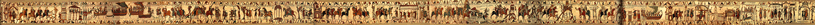 O 'movimento' da lanterna mágica ganha vida neste slide de origem alemã. Quatro imagens simples da esquerda para a direita conta a história do pintor e brincalhão. De Chales introduziu a idéia de sucessivas lâminas de vidro em uma planície horizontal em 1674. Veja também Zahn 1685. (Cortesia Os internacionais Artes, Antiguidades e Colecionáveis Forum )