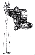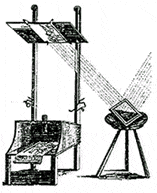 Em 1727 Nicolai Bion (direita) criou esta câmara obscura "externo" com uma ajuda de desenho. O espelho no banco reflete um fluxo específico de luz solar dentro de uma sala escura, para cima da imagem a ser copiada (apoiado acima da base). A imagem da imagem foi então visto através da abertura (no telhado da base) e no interior da base, na folha de papel de desenho. O vante de caixa da câmera é aberto para permitir que o artista possa trabalhar.